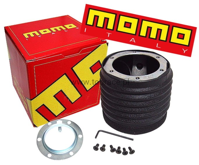 Oryginalna naba MOMO - adapter umożliwiający zamontowanie sportowej kierownicy, może służyć również do przybliżenia kierownicy do kierowcy.