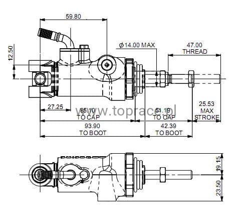 Zastosowanie w tym modelu łożyska igiełkowego jako mocowania pozwala na swobodne dopasowania położenia popychacza pompy w zależności od położenia pedału sprzęgła lub dźwigni hamulca ręcznego. Pompa działa na zasadzie pociągnięcia (Pull). Model CP6465 charakteryzuje sie płaską konstrukcją dzięki umieszczeniu wyjścia płynu z boku cylindra oraz specjalnie dopasowanemu wejściu.
