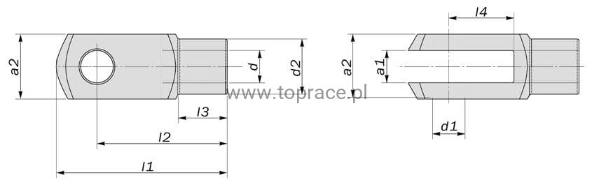 OBPG6: A1 - 6,3 mm A2 - 11,8 mm D - M6 D1 - 6mm D2 - 10mm I1 - 30,9 mm I2 - 24mm I3 - 9mm I4 - 12mm